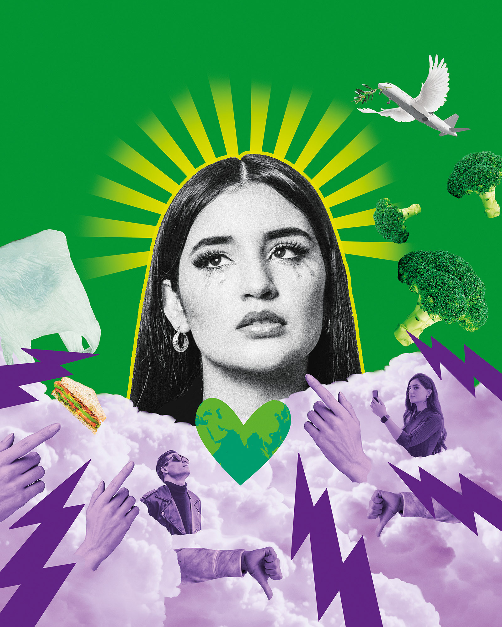 Collage series created for an article about "shaming and blaming" within green communities by Delna Antia-Tatic published in BIBER Magazine